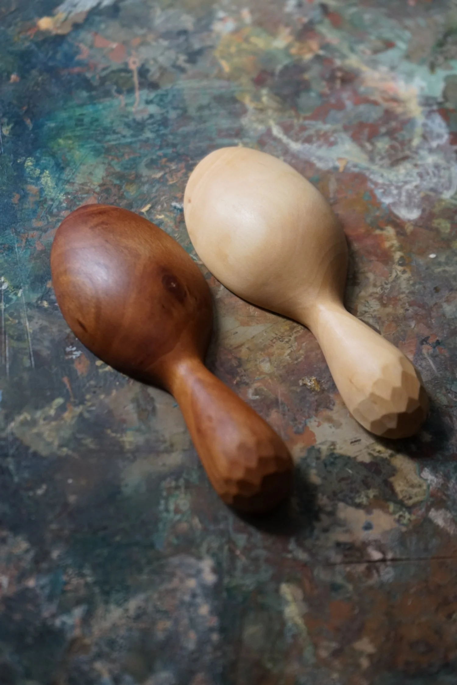 Gebacken erhält Kirschholz eine kräftige rote Farbe – wie dieses Schäufelchen, das sich zum Schöpfen von Mehl oder Müsli eignet, und dessen großzügige Laffe sorgfältig ausgehöhlt wurde.